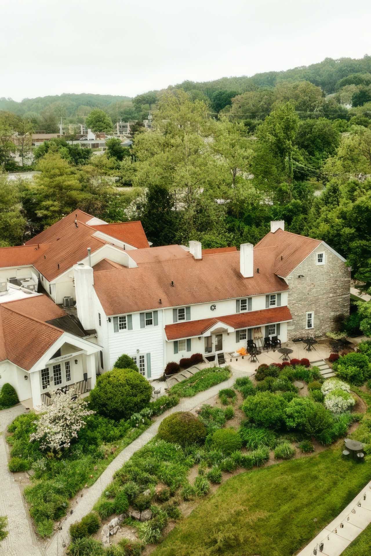 The Farmhouse at People’s Light is a refined, smaller-scale venue offering on-site accommodations, getting-ready spaces, ceremony locations, and reception areas—all within a thoughtfully designed property.