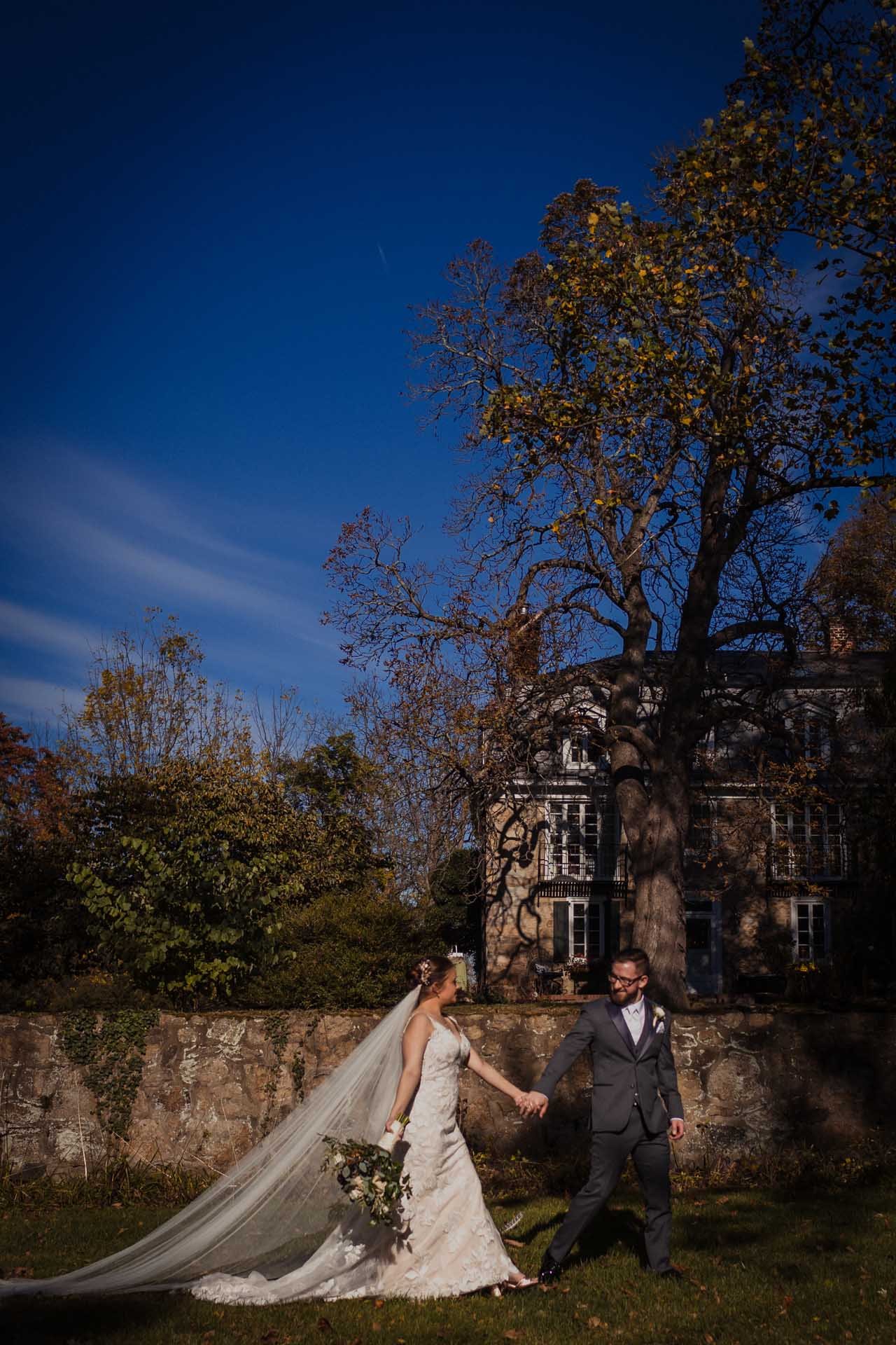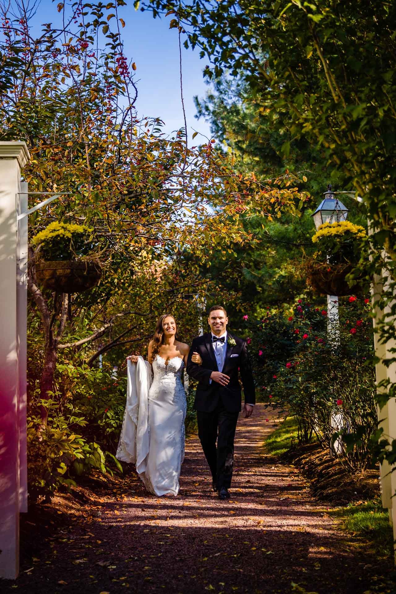 Joseph Ambler Inn is a more intimate venue with multiple buildings for getting ready, ceremony locations, and reception rooms. Its layout allows couples to keep everything on-site while maintaining a relaxed, historic feel.