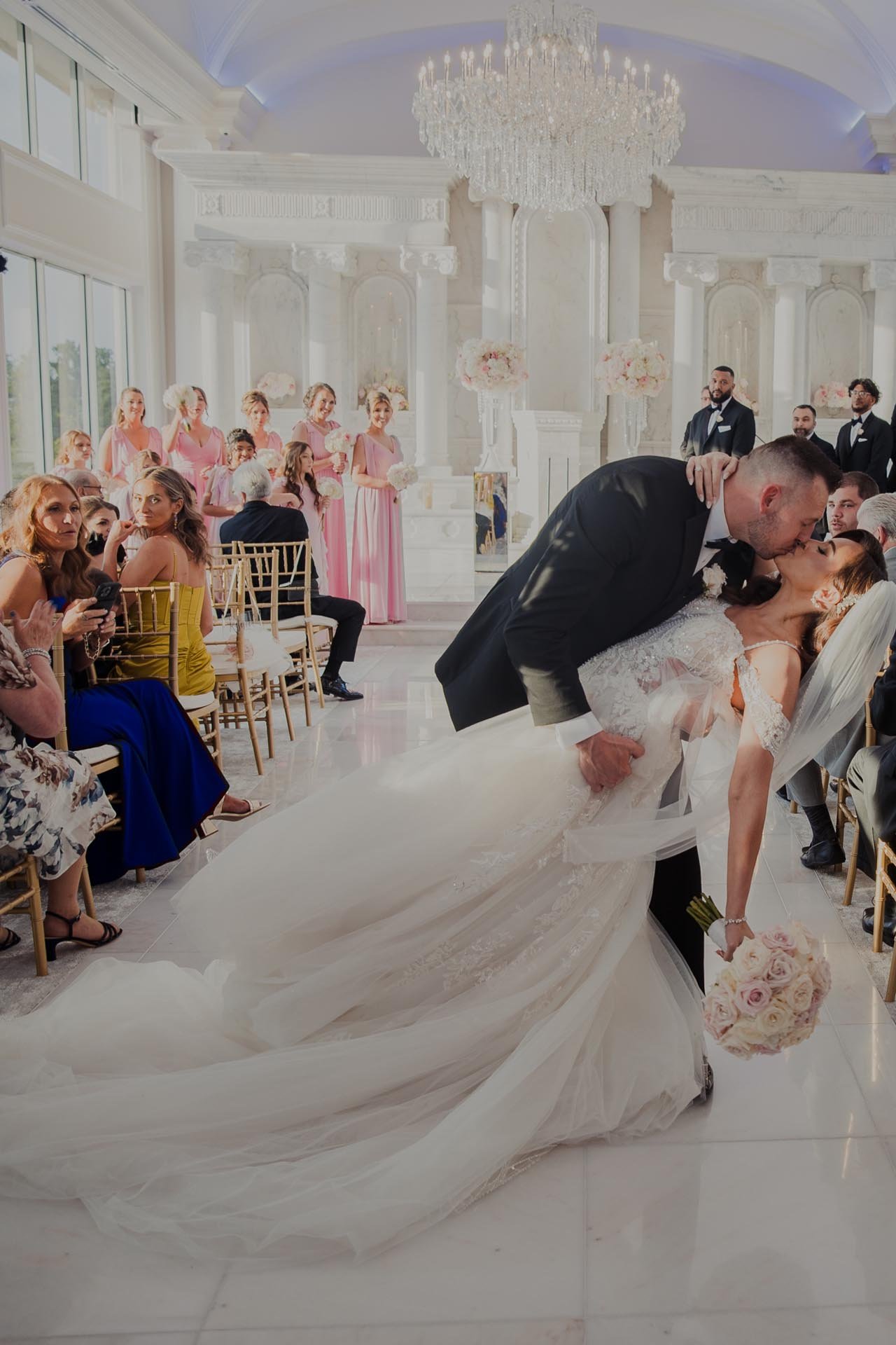 The Merion is a purpose-built wedding venue featuring lavish bridal suites, indoor ceremony spaces, cocktail areas, and grand ballrooms—all within one location. → View a real wedding: The Merion Wedding Photos
