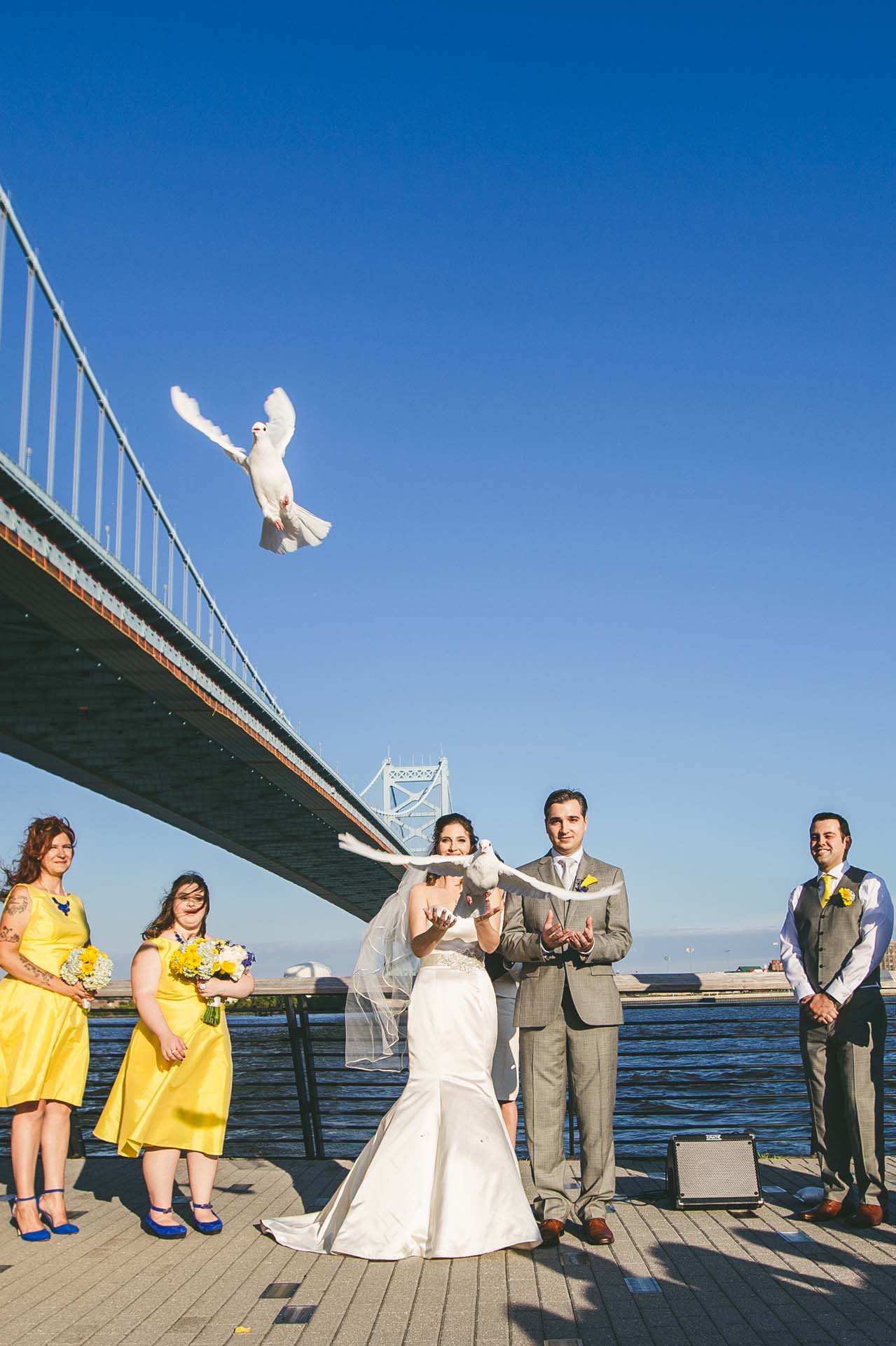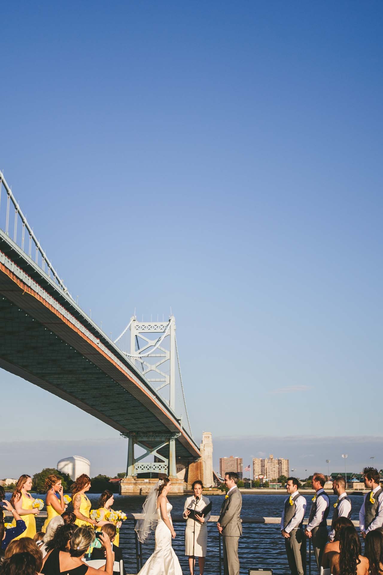Minimalist and modern, Race Street Pier offers sweeping views of the Ben Franklin Bridge and Delaware River. It’s a perfect option for couples who want a clean, open-air ceremony space with a strong connection to the city.